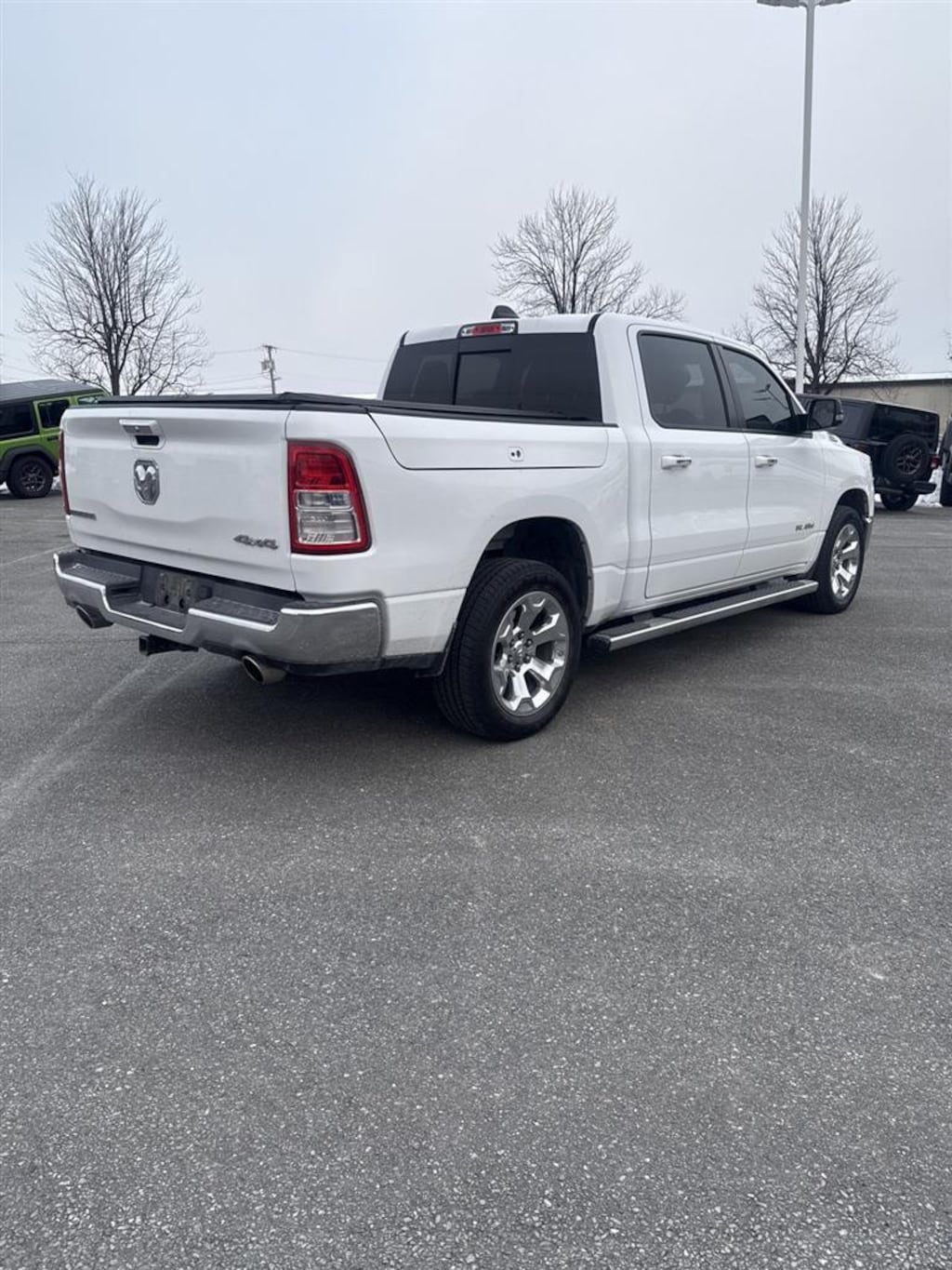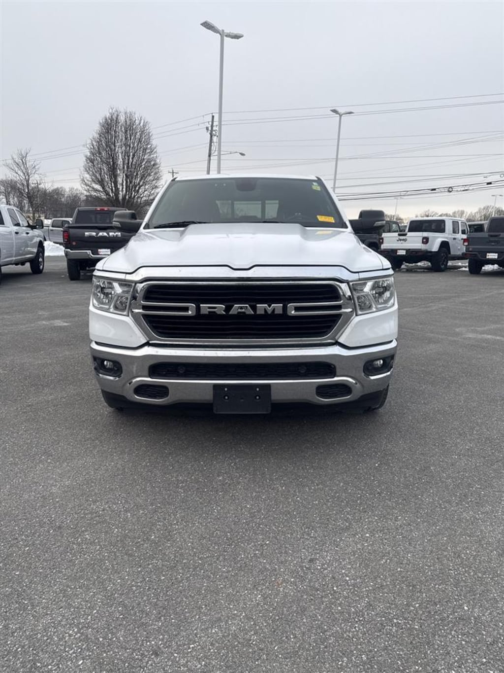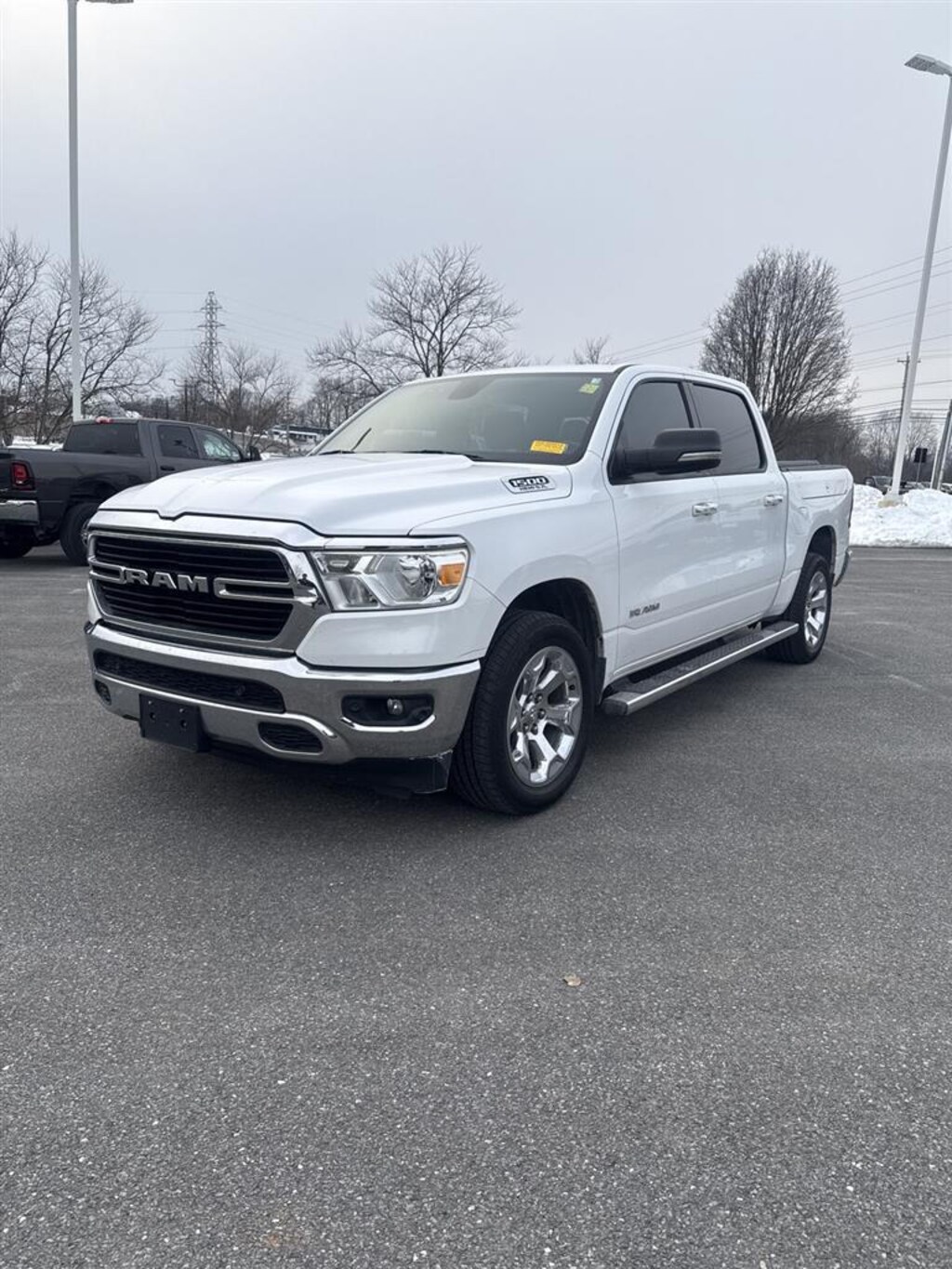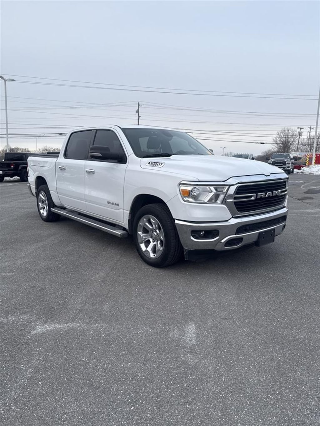 ENGINE: 5.7L V8 HEMI MDS VVT ETORQUE, TRANSMISSION: 8-SPEED AUTOMATIC (8HP75), QUICK ORDER PACKAGE 27Z BIG HORN/LONE STAR, 3.92 REAR AXLE RATIO, WHEELS: 20 X 9 ALUMINUM CHROME CLAD, TIRES: 275/55R20 ALL SEASON LRR, BRIGHT WHITE CLEARCOAT, BLACK, DELUXE CLOTH BUCKET SEATS, GVWR: 7,100 LBS, BED UTILITY GROUP, BIG HORN LEVEL 2 EQUIPMENT GROUP, WHEEL TO WHEEL SIDE STEPS, RADIO: UCONNECT 4C NAV W/8.4 DISPLAY, SINGLE DISC REMOTE CD PLAYER, REMOTE START SYSTEM, FRONT & REAR RUBBER FLOOR MATS, RAMBOX CARGO MANAGEMENT SYSTEM, PARKSENSE FRONT/REAR PARK ASSIST W/STOP
